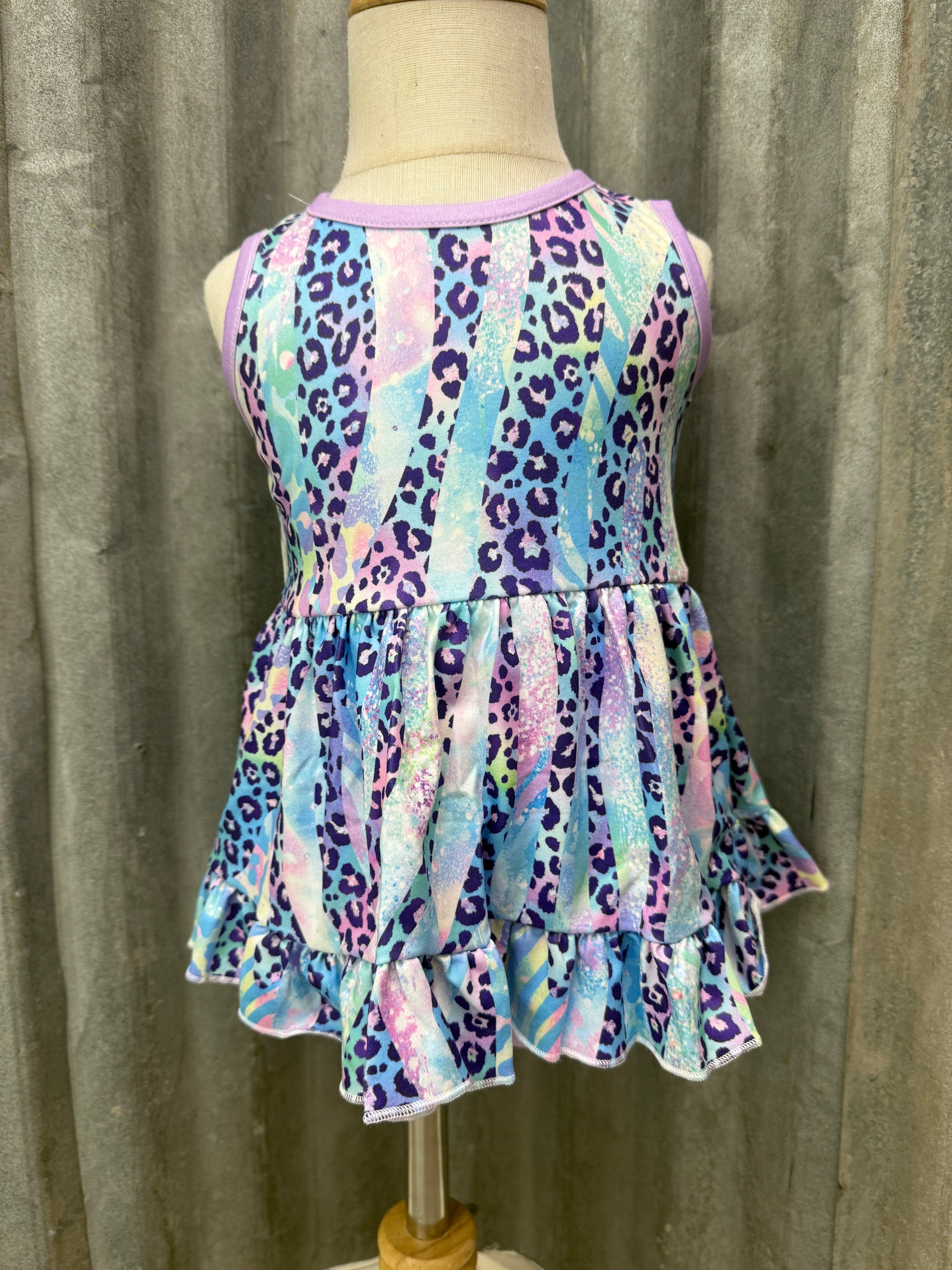 The bold pastel leopard + stripe pattern brings a playful pop of color, making this romper perfect for everyday wear, daycare days, summer outings, or photo-ready moments. Soft binding around the arms and neckline keeps your little one comfy, while the breathable fabric keeps them cool during warm weather.